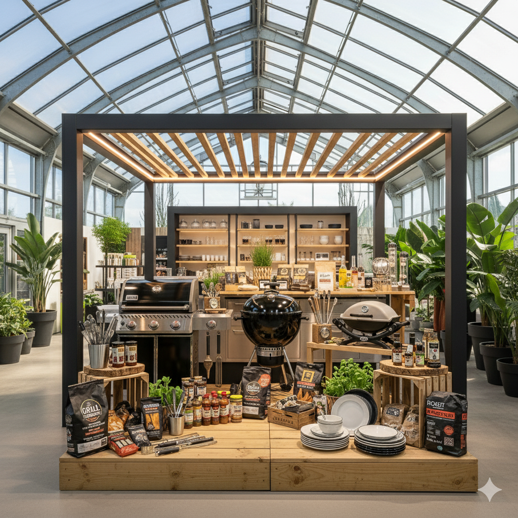 La nueva plataforma expositiva de madera natural de Organizzazione Orlandelli está diseñada para transformar cualquier área del punto de venta en una isla escenográfica. Con una superficie de 120x80 cm y una altura de 15 cm, esta plataforma es ideal para organizar zonas temáticas como el área de barbacoa, la zona de piscina o el área de mobiliario exterior. La estructura, robusta y sólida, tiene una capacidad de carga superior a los 100 kg, garantizando una amplia libertad expositiva sin límites prácticos sobre los productos que se pueden colocar.