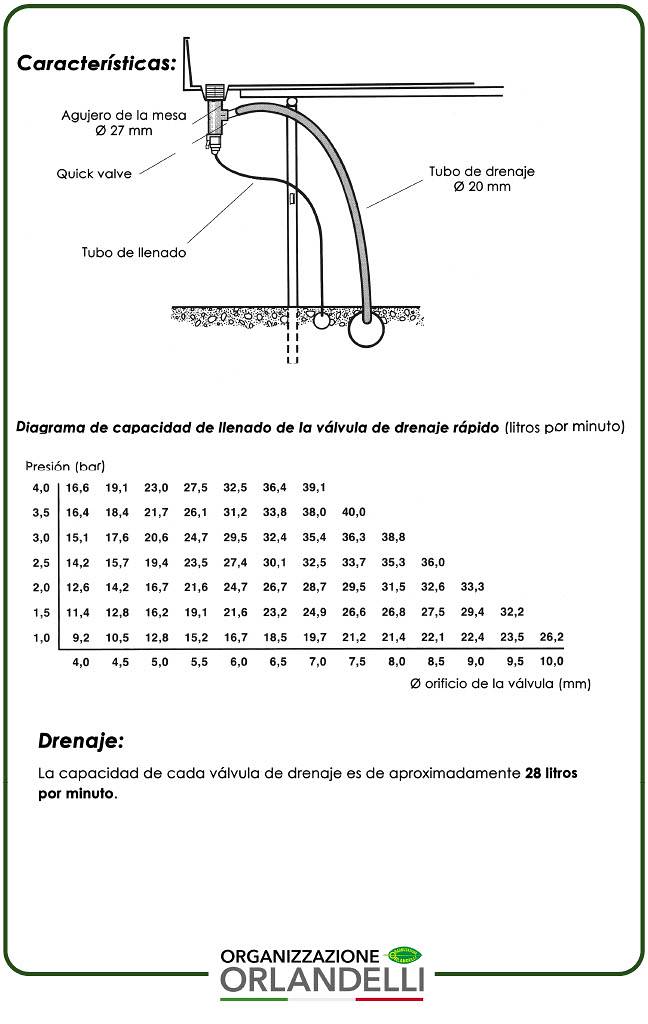 Optimice la gestión del agua de sus bancos de cultivo con la Orlandelli Quick Valve, la solución profesional diseñada para maximizar la eficiencia en los sistemas de riego por flujo y reflujo. Esta válvula de drenaje rápido es un componente indispensable para quienes buscan precisión y rapidez: gracias a su estructura técnica avanzada, permite gestionar el llenado y vaciado de la bandeja con un único dispositivo compacto y fiable.